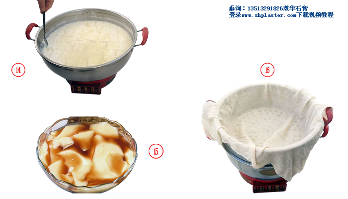 步驟11:把食品級點(diǎn)豆腐石膏粉和水迅速混合,快速攪拌成石膏漿。
